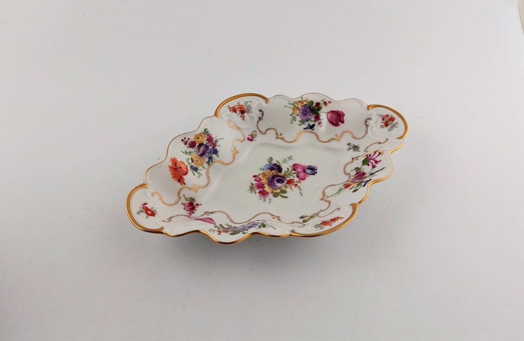 Wkładamy dużo pracy w identyfikację wytwórcy i określenie wieku naszej porcelany. Większość wyrobów znajdujących się w naszym sklepie ma dołączone karteczki mówiące o ich pochodzeniu. Często określenie wieku nie jest łatwe a czasem wręcz niemożliwe, jednak w zdecydowanej większości przypadków udaje nam się wyrób zidentyfikować. W ofercie sklepu jest porcelana z przełomu wieków XIX i XX, z okresu międzywojennego oraz powojenna (z lat 1940-70), głównie niemiecka i trochę polskiej. Mamy też trochę bardzo cenionej przez koneserów, znawców i kolekcjonerów porcelany śląskiej sprzed 2 wojny światowej (m. in. Sorau, KPM, Karl Tielsch, Koenigszelt).